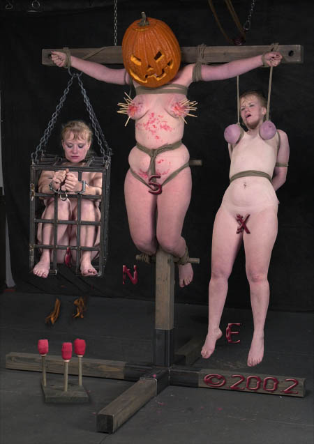 Her opalescent, resilient flesh is so tantalizing everyone wants to get their hands on it. Gagged and bound helplessly, she wails and cries at their abuse. But her soft brown eyes betray, revealing the burning desire of which she dares not speak. In her live feed from December 2000, cowgirl relishes in the torments of three different doms.